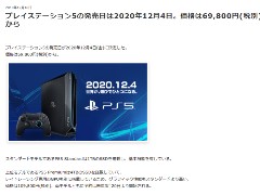 - PS5の発売日や価格に関するデマが広がる。ソニーは「公式発表ではない」と否定