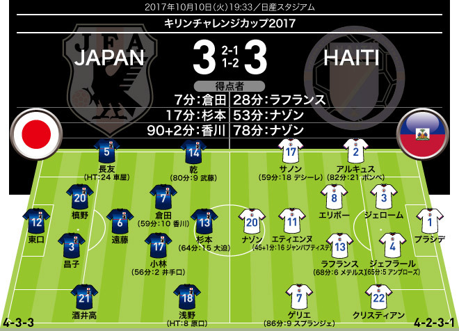 - 【2017年10月10日】日本代表×ハイチ代表の戦評記事